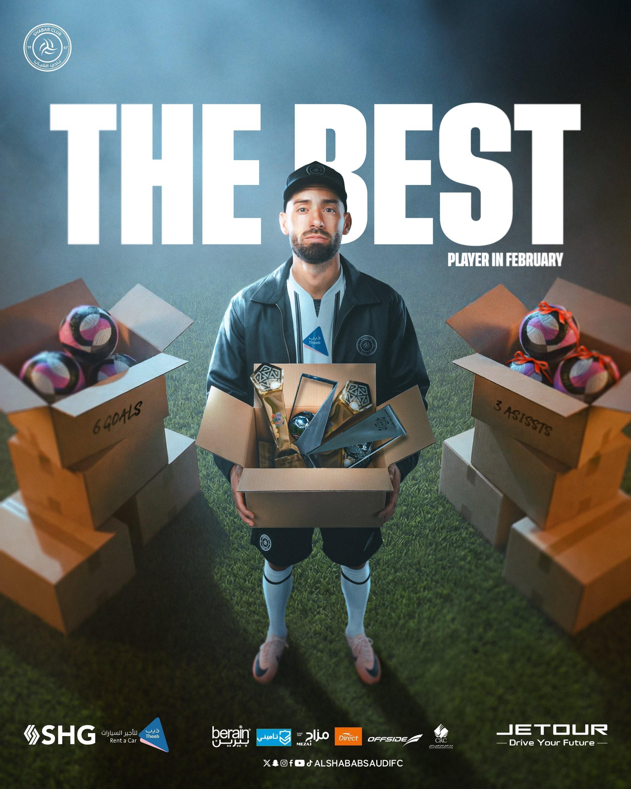 官方消息,利雅得青年边锋卡拉斯科当选沙特联二月最佳球员。